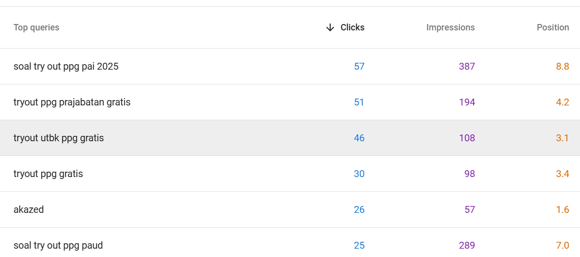 Saya berhasil mendapatkan page one untuk beberapa keyword.